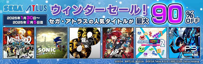 【最大90%オフ】『メタファー:リファンタジオ』『龍が如く8』『ユニコーンオーバーロード』などが対象のウィンターセールがセガストアで開催中 電撃オンライン「アトラス Lunar New Yearセール」開催中 『ペルソナ3 リロード』が発売1周年記念で50%OFF! アトラス『ペルソナ』シリーズ「Lunar New Yearセール」開催中! ペルソナチャンネル「アストロボット」や「CoD:BO6」に「龍が如く8」など1843アイテム対象! PS Store「旧正月セール」開催 GAME Watch「龍が如く 極&龍が如く 極2セットパック」が35%オフ,「龍が如く8」が50%オフ。「セガ スペシャル ウインターセール」,開催中 4Gamer.net