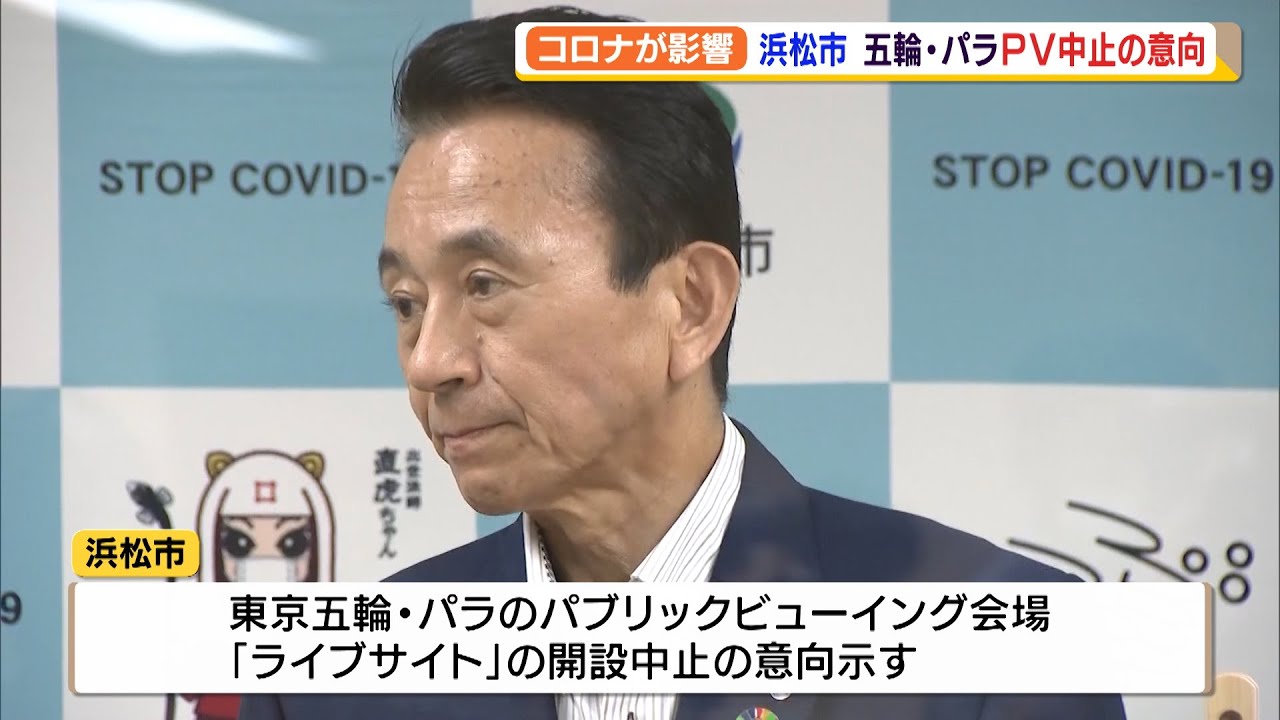 浜松市の鈴木康友市長は臨時会見を行い、東京オリンピック・パラリンピックのパブリックビューイング会場「ライブサイト」の市内への開設を中止する意向を明らかにしました。新型コロナの感染拡大が収まらない中、市民の健康と安心安全を最優先するため、県や大会組織委員会に対し、中止する意向を伝え、協議するとしています。県内の「ライブサイト」は浜松市の他、静岡市や御殿場市など6つの会場で開催を予定していますが、6日伊東市が中止することを発表しています。