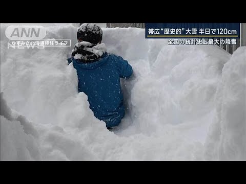 北海道・帯広市では、12時間に120センチもの雪が降り、全国の統計史上最大を記録しました。