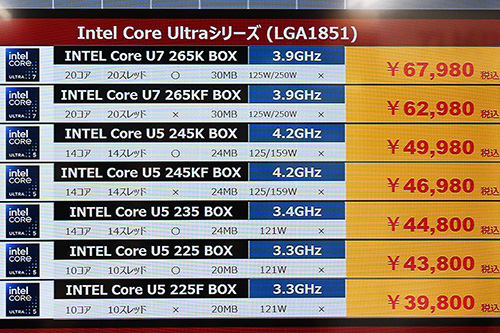 「Core Ultra 5 235」が44,800円など値下がり(2月8日撮影)