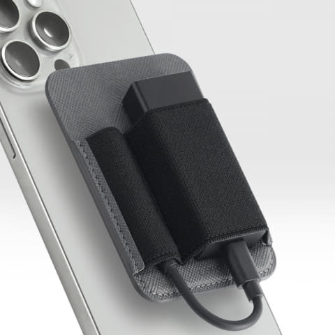 DAC POCKETの特徴はiPhoneのMagSafe機構をそのまま利用して背面に磁石で簡単に取り外しができるということだ。表面には伸縮性に優れたバンドが二組ついていて、大きい方でスティック型DACを挟み込むことができる。小さい方は使用していない時にUSB端子を収納するのに使うことができる。取り外しはMagSafe製品らしく大変に楽だ。取り付け方向に注意すればそう容易には外れない。これは優れものだ。
