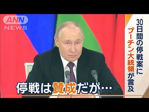 アメリカが提案している30日間の停戦案に対し、ロシアのプーチン大統領が初めて言及した。停戦には賛成だとしつつも、受け入れには否定的な姿勢だ。