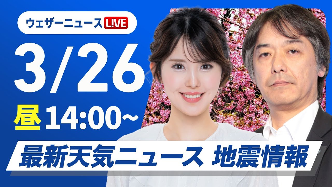 【ライブ】最新天気ニュース・地震情報 2025年3月26日(水)/関東から九州は初夏の陽気が続く〈ウェザーニュースLiVEアフタヌーン・小川 千奈/宇野沢 達也〉