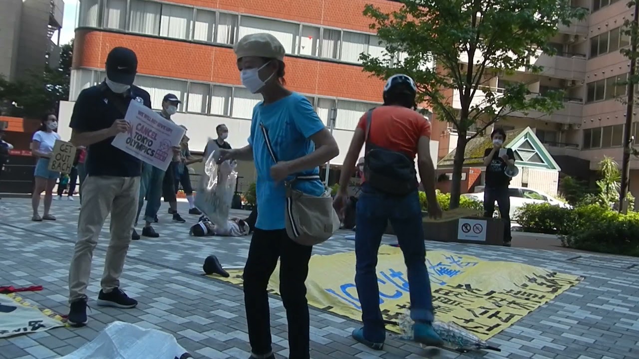 バッハ帰れ!『五輪は中止!ホテルオークラ前抗議スタンディング』デモが行われました。