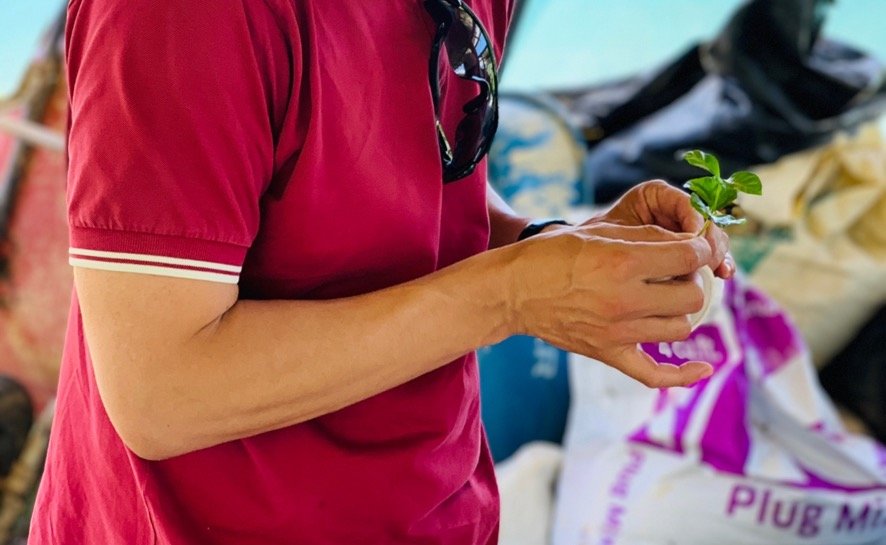 テスト生産での初収穫は2021年のこと。この頃、接ぎ木をした木はまだ1mほどの高さで、収穫できたのはたった数百グラムでした。コーヒーの木は植えてから約3年で収穫できますが、この時はまだ2年しか経っていません。