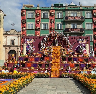 また、オアハカ市内では中心部を回るパレードも行われ、街全体がお祭りムード一色でした。日本のお盆とはまた違った、メキシコならではのやり方に感動しました。また、オアハカ市の美しさに圧倒された死者の日でした。