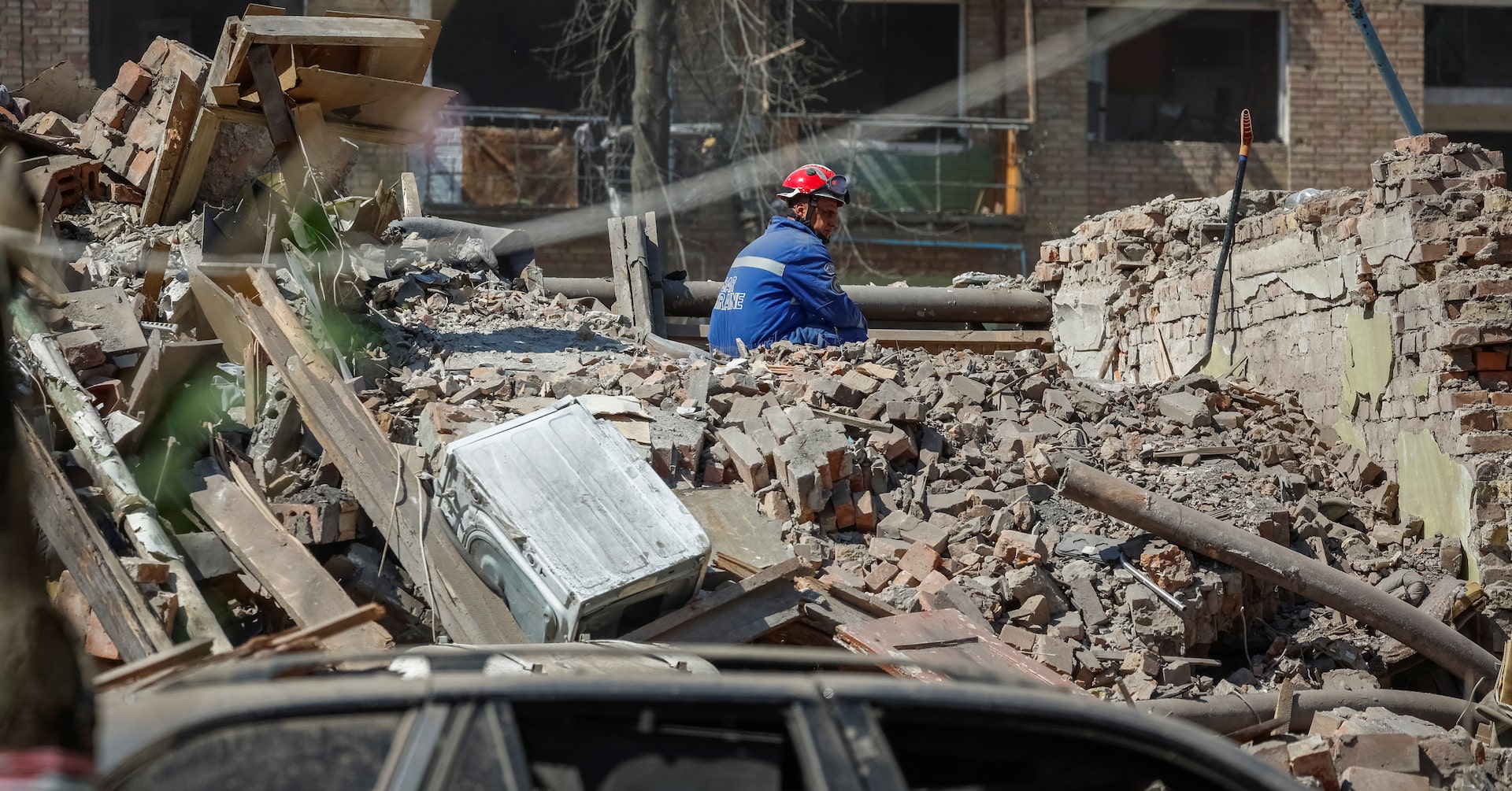 ウクライナの首都キーウがロシア軍によるとみられる夜間攻撃を受け、少なくとも8人が死亡した。24日撮影(2025年 ロイター/Alina Smutko)