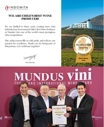今回インドミタが受賞した「最優秀生産者賞」は、出品されたワインの品質の高さはもちろん、ワイナリーの総合的な取り組みや、その地域におけるワイン産業への貢献度なども考慮され、最も優れたワイナリーに贈られる栄誉ある賞です。今回の受賞により、その卓越したワイン造りの技術と、チリワインの品質の高さを世界に改めて示すものとなりました。