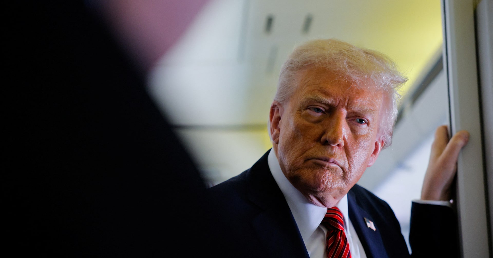 5月15日、トランプ米大統領(写真)は「適切であれば」16日に、トルコで行われるロシアとウクライナの直接協議に行くと述べた。写真は14日、ドーハに向かう大統領専用機内で撮影(2025年 ロイター/Brian Snyder)