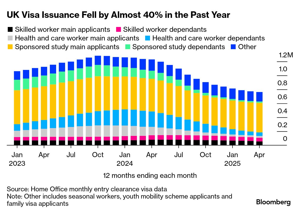 また政府は、今週発表したビザ要件厳格化の影響にも対処したい考えだ。スターマー首相は移民を「大幅に」減らす方針を示しており、予算責任局(OBR)による経済成長率見通しの下方修正につながる可能性もある。同局が移民流入を英経済の押し上げ要因と評価する傾向があるためだ。