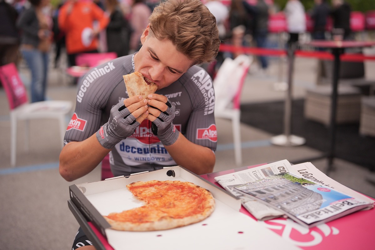 笑顔のファンアールトとアッフィニ photo:RCS Sportピザにかぶりつくプロウライト photo:RCS Sport