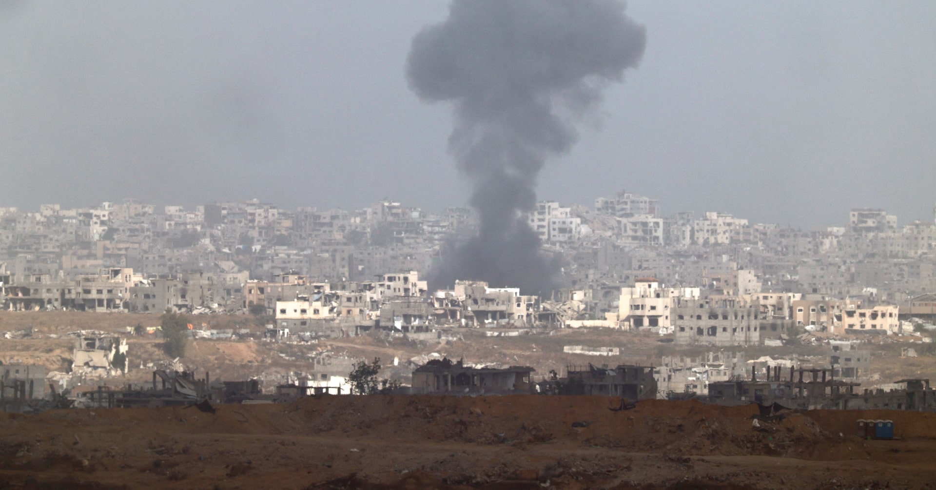 5月27日、ドイツのワデフル外相は、イスラエルに対し人道法に反して使用される武器を輸出しない方針を表明、対策を慎重に検討する意向を示した。写真はガザ北部から立ち上る煙。イスラエルとの境界付近で同日撮影(2025年 ロイター/Amir Cohen)