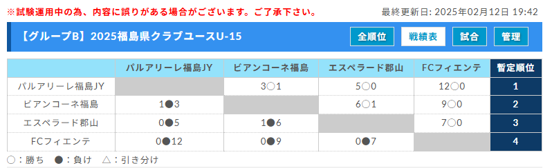 リーグ戦績表