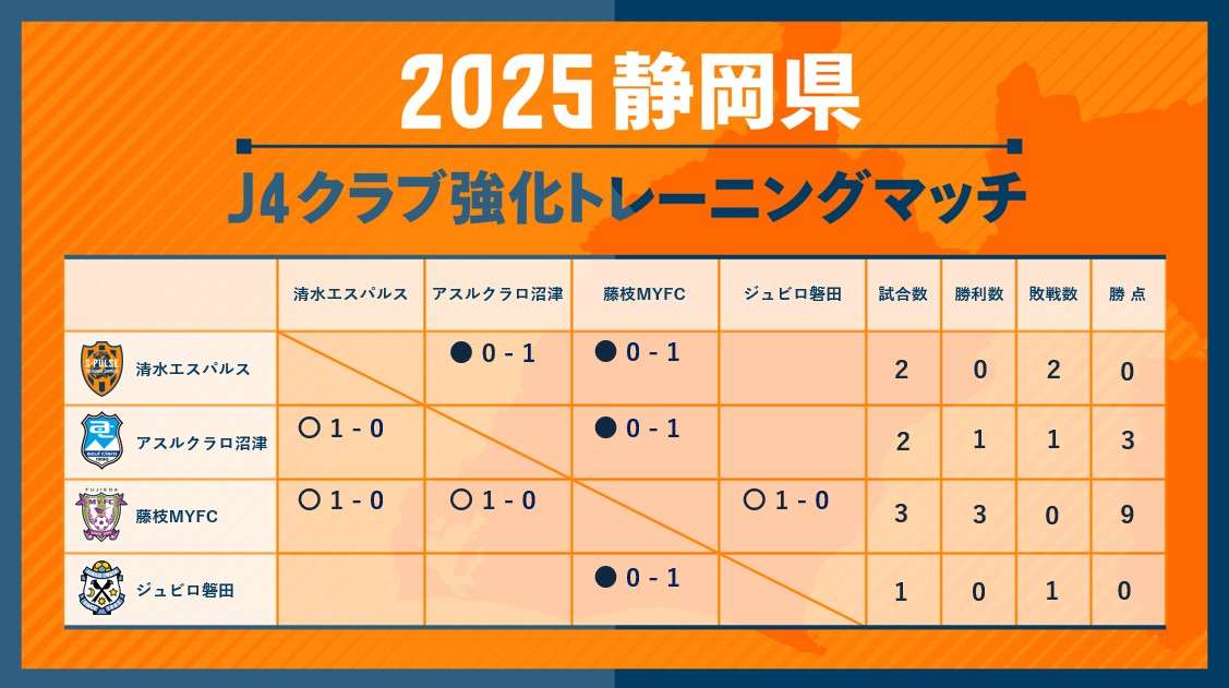 本日行われました静岡県J リーグ加盟4クラブ強化トレーニングマッチ(清水エスパルス vs アスルクラロ沼津)の結果をお知らせいたします。
