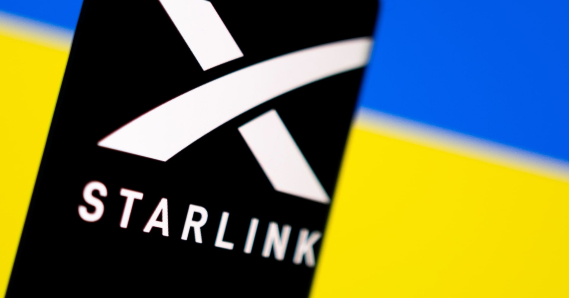7月10日、ウクライナ通信事業者大手キーウスターのオレクサンドル・コマロフ最高経営責任者(CEO)は、同国が米実業家イーロン・マスク氏率いる宇宙企業スペースXの衛星インターネットサービス「スターリンク」のモバイルサービスを提供する欧州初の国になると明らかにした。写真はスターリンクのロゴとウクライナの旗のイメージ。2022年2月撮影(2025年 ロイター/Dado Ruvic)
