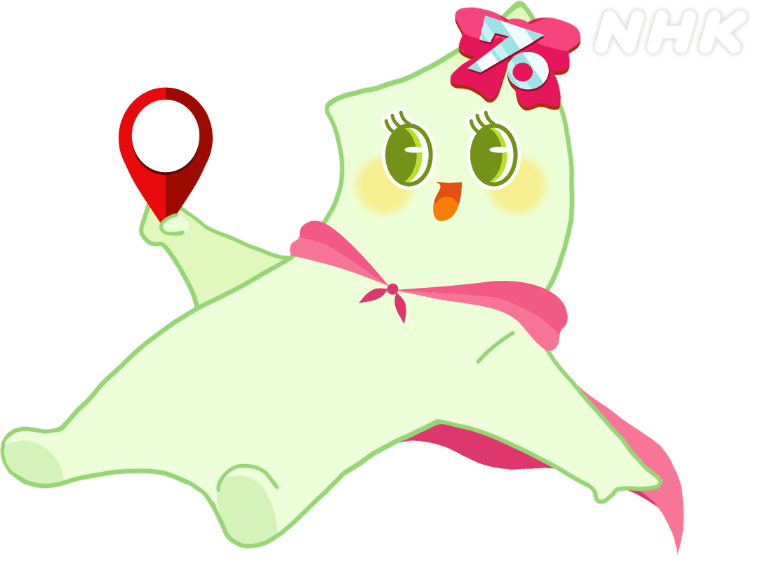 道央と胆振日高の地形がモチーフ。“70”の文字を髪飾りに、ななまるMAPロゴに描かれたマップピンを手に持たせました。放送でも活躍予定!お楽しみに♪