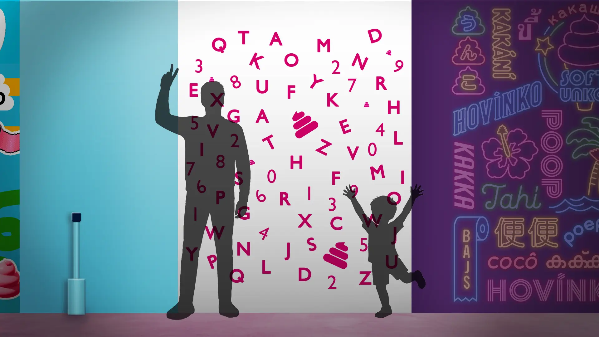 世界中の“うん語”が可愛く光り輝くこの場所は、うんこミュージアムの中でも特に人気のフォトスポットです。