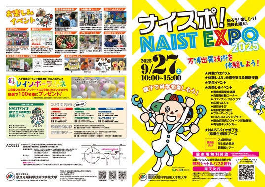 奈良先端科学技術大学院大学(学長:塩崎一裕)は、子供から大人まで広く一般市民を対象とした「ナイスポ! NAIST EXPO 2025」を、9月27日(土)に下記のとおり開催いたします。