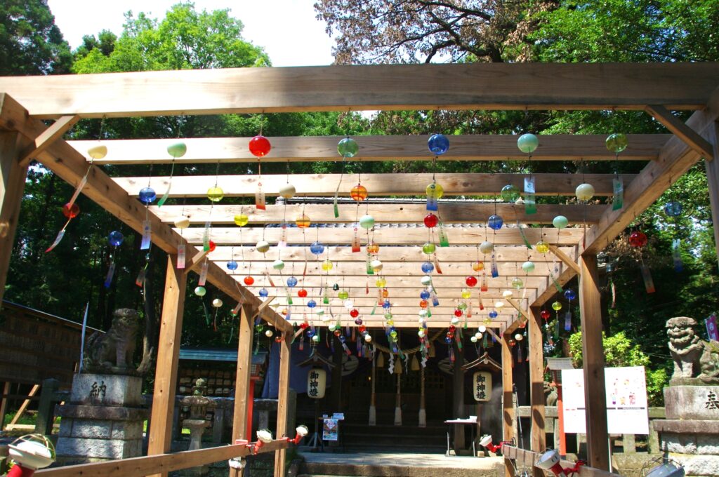 栃木県小山市間々田にある間々田八幡宮で、今年も「涼風 風鈴まつり」が開催されています。風鈴が奏でる音に癒されながら、妖怪猫たちを探す参加型の謎解きイベントも楽しめるという内容です。