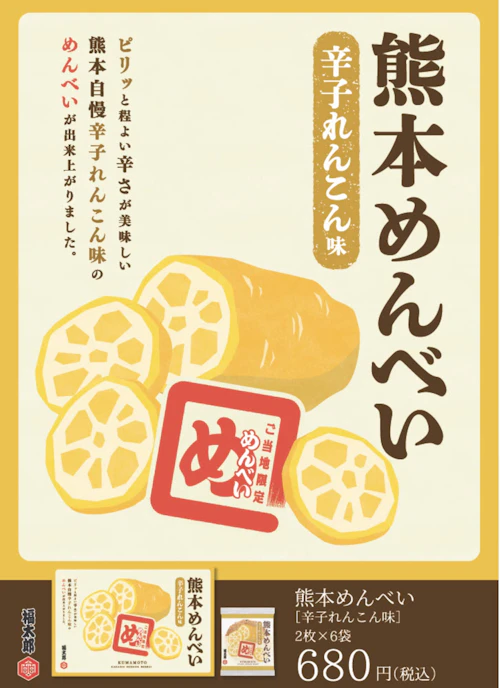 ~めんべいで有名な福太郎と清正製菓のコラボ~ 熊本の郷土料理「辛子れんこん」がめんべいに!新発売!
