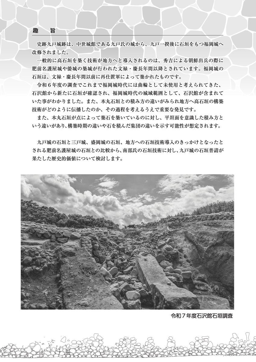 8月31日(日)、シビックセンター(岩手県二戸市)において「史跡九戸城跡石垣シンポジウム」が開催されます。参加無料、要事前申込。