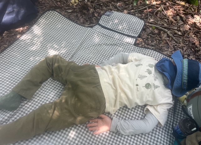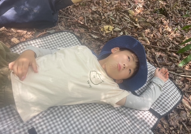 木々に囲まれた空間でシートを敷き、お昼ご飯を食べました。