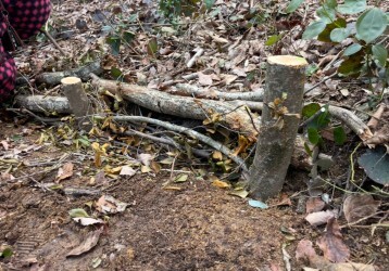 ナラ枯れしている木や、雨のたびに土砂が崩れる箇所があります。