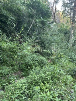 草が生い茂り、竹や木も倒れていて