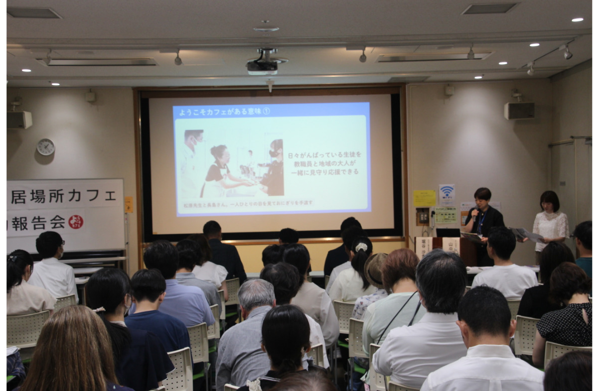 横浜総合高校=南区大岡=の校内で運営されている「ようこそカフェ」が開始されてから10月で10年目に入る。8月20日には、同カフェが10年目を迎えることを記念した活動報告会が横浜市青少年育成センターで行われた。当日は、定員60人を超える参加者で会場を埋め尽くした。