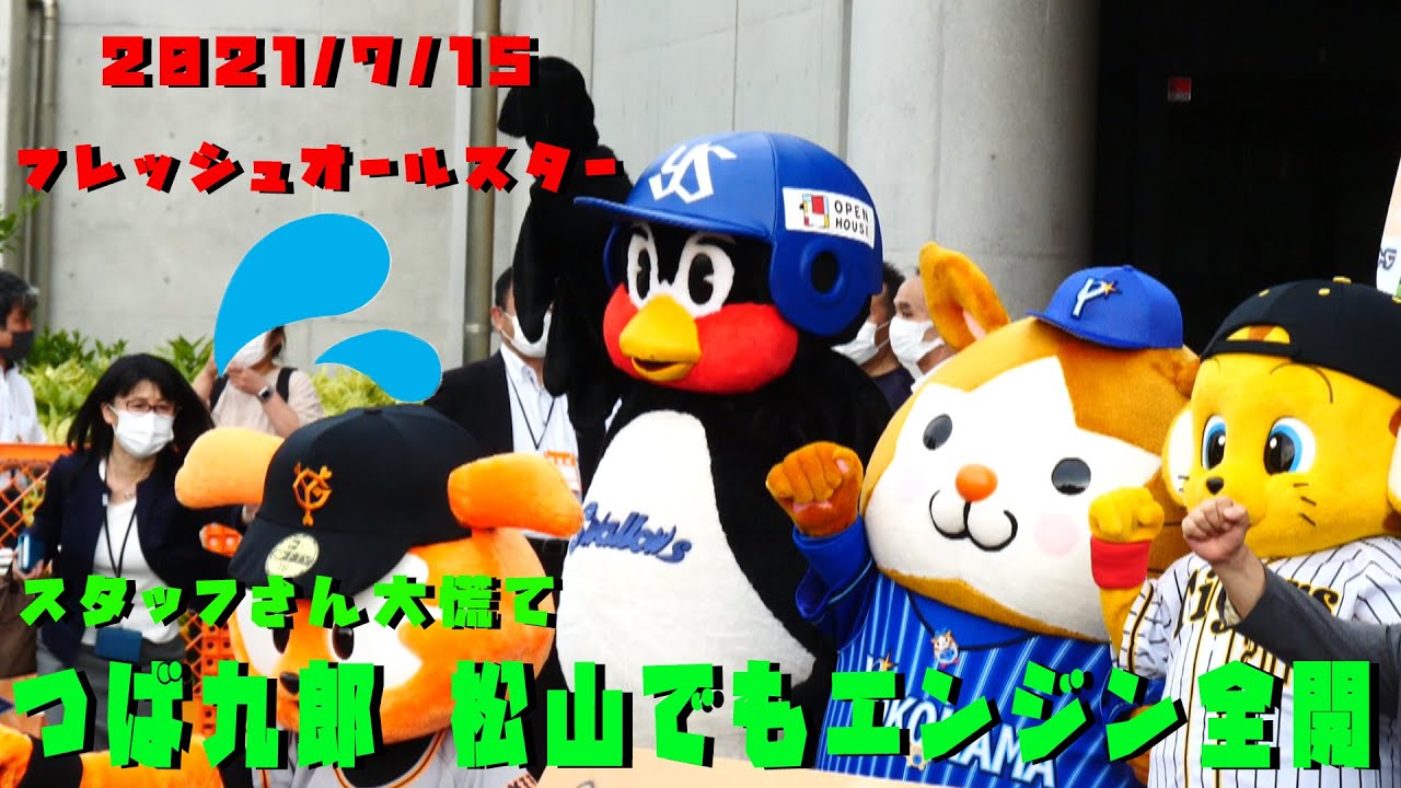 つば九郎をはじめ、12球団のマスコットが登場し、つば九郎は松山に来てもつば九郎節が全開。スタッフさんが大慌ての場面もありましたが、やはり先生は先生でした(笑)
