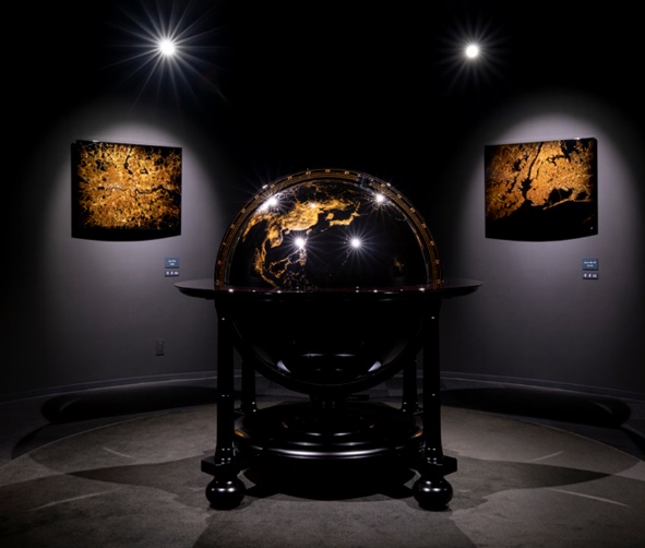 こちらの地球儀は会期中、地球儀と同じ名称の施設「夜の地球 Earth at Night」で展示されています。