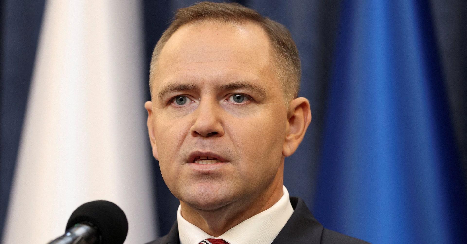 8月25日、ポーランドのガフコフスキ副首相兼デジタル化相は、同国で暮らすウクライナの避難民向け支援措置延長法案についてナブロツキ大統領(写真)が拒否権を発動したため、ウクライナが米スペースXの衛星インターネットサービス「スターリンク」を利用できなくなる恐れが出てきたと明らかにした。ワルシャワで21日撮影(2025年 ロイター/Kuba Stezycki)