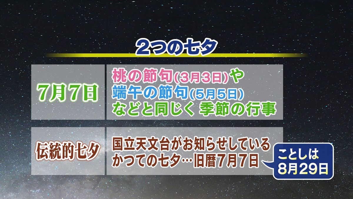 この旧暦の7月7日を国立天文台が「伝統的七夕」と呼んでいますが、今年は本日8月29日(金)が「伝統的七夕」です。