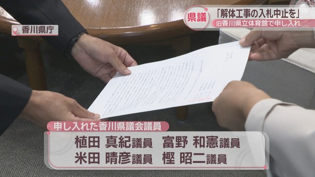 旧香川県立体育館の解体 県議会議員4人が入札手続き中止を知事らに申し入れ