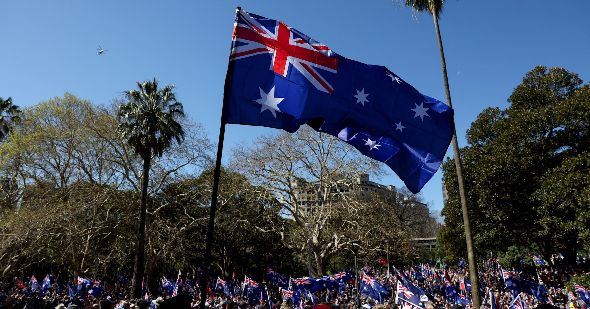 オーストラリアでは31日に最大都市シドニーなど主要都市で反移民を掲げるデモ「マーチ・フォー・オーストラリア」が行われ、数千人が参加した。写真は8月31日、シドニーで撮影(2025年 ロイター/Hollie Adams)