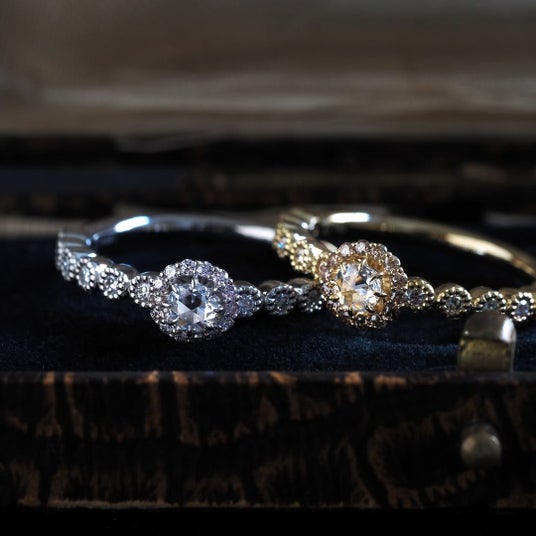 華美すぎず、けれど確かな存在感をもつリングは、日常にも自然に馴染む佇まい。細部に宿る技術と美意識を、ぜひ店頭でご覧ください。