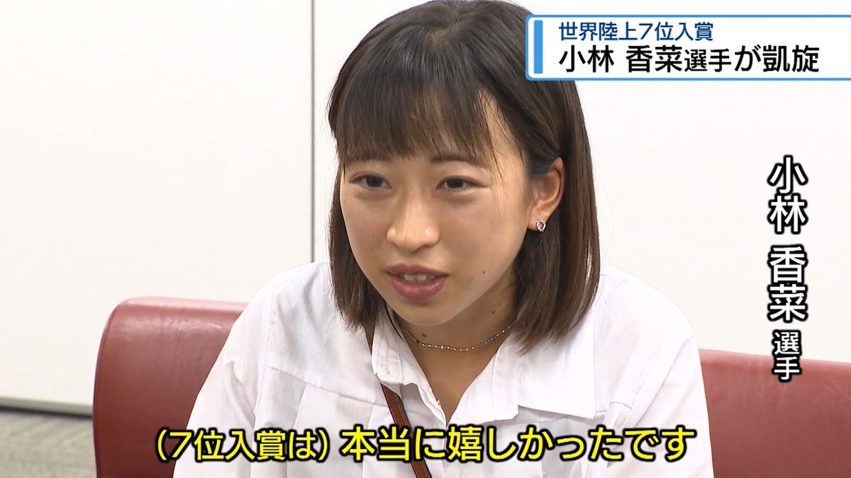 陸上の世界選手権女子マラソンで7位入賞を果たした、大塚製薬の小林香菜選手が9月23日、徳島阿波おどり空港に凱旋し、関係者らの出迎えを受けました。