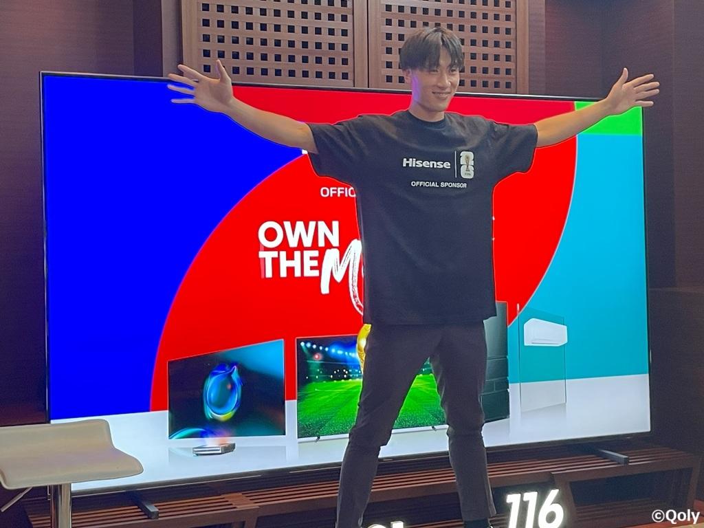 ジャーメインは目の前の大画面に圧倒されながらも、「前回大会は家族と一緒に自宅で日本代表の試合を観戦していたのですが、このハイセンスさんの116インチテレビで観るとより迫力があると思います」と語った。