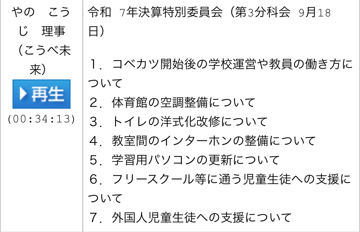 以下に質疑の内容を添付させていただきます。(神戸市教育委員会事務局からの答弁は質疑の動画からご覧ください)