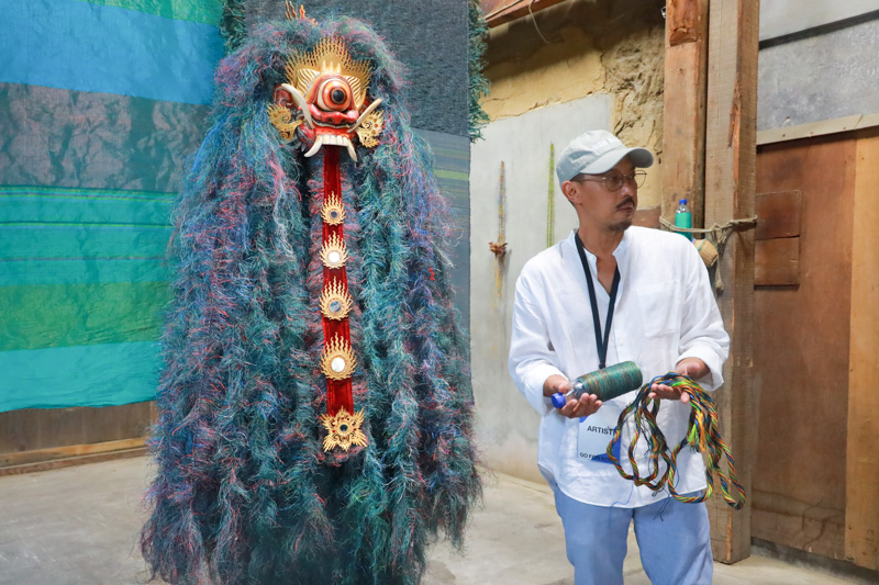 作家のアリ・バユアジさんと《One Eyed Rangda》2023