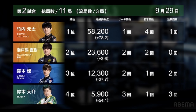 第2試合詳細結果 ©ABEMA