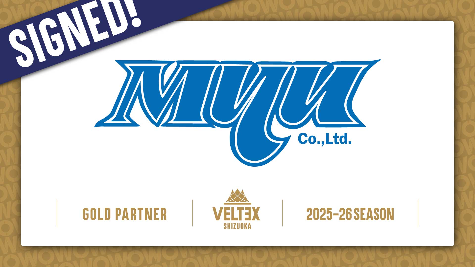 このたび、ベルテックス静岡は、株式会社MYUとゴールドパートナー契約を継続にて締結し、2025-26シーズンもご支援いただくことになりましたので、下記の通りお知らせいたします。