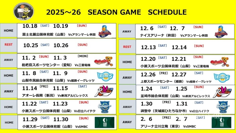 2025-26シーズン スケジュール決定!!