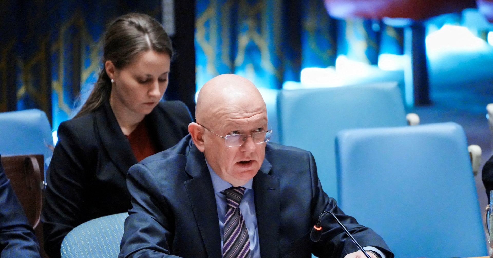 10月1日、ロシアのネベンジャ国連大使(写真)は国連が核開発問題を巡り再開した対イラン制裁を認めないとの立場を表明した。写真は9月、ニューヨークの国連本部で撮影(2025年 ロイター/Eduardo Munoz)