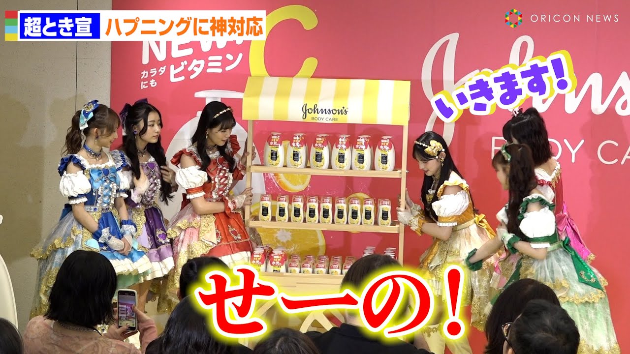 今回のポップアップイベントについて伺ってみたいと思います。え、このポップアップイベントでは超時めき宣伝部ハウスのお庭を再しているんですけれども、実際に体験してみていかがでしょうか?では松須田さんからお願いします。 はい。すごくこの鬼マも可愛いんですけど 、前回動画を撮影させていただいてた時に あの時めきハウスがありまして、そこで みんなで一緒に住んだらどうなるんだろう なっていう風に思ってたりしたんですけど 、今回もすごい可愛いお庭でレモンが咲い てるんですよ。だからみんなでお庭で レモン積んでレモンジュース飲んだりとか ちょっと遊んでみたいなって思います。 ありがとうございます。 では、よ川さんいかがでしょうか? あのお庭の中にセルフケアができるペースペースだったりやとか、あと楽しいフォトスポット、あとビタミドリンクとかもあって本当に 楽しめるエリアがたくさんあるので、是非皆さんに来ていただいて解と解きめいて欲しいなって思います。あ、ありがとうございます。 さあ、ということで、それではここでこの時ハウスの庭に遊びに来てくださる方々がポトスペースいっぱいあるんですけれども、このポトスペースで写真を撮る時に真似できるようなおすめのとめきポーズを ちょっと考えて披露していただけたらと思います。で、今回考えていただいたポーズのテーマちょっと酒井さんから教えていただけますでしょうか? はい。 あの、メンバーとポーズを考えさせてもらったんですけど、あの、本当ソンさんのボディケア商品はすごく超最強だなっていう風に思ったので、あの、私たちの楽曲の超最強の振り付けで、あ、ちょっとじゃ、マイク、 ありがとうございます。 こんな感じでビタミンC超最強ビタミンC ポーズというものを考えました。 あ、可愛い。ありがとうございます。これをもうすぐに真似できるところもとっても嬉しいですね。 ありがとうございます。ではちょっとこの後改めて一度ご準備だいてポーズでのお写真を撮影させていただけたらと思います。では一度メンバーの皆様はいご対場いただきましてご準備をお願いいたします。この後ポスでの撮影をさせていただきます。この後もよろしくお願いいたします。 よろしくお願いします。ごいます。 ではちょっとこちらのお写真の準備もさせていただきますね。メンバーの皆様は一旦候補にはい。 お進みたい。 [音楽] すごいメンバーの皆様がお手伝いただいてありがとうございます。 お優しい。 ありがとうござい、ありがとうございます。 あとはこちらで。あ、ありがとうございます。綺麗いに並べさせていただきますね。はい、ありがとうございます。皆さんおし礼いたしました。あの、このままこのはい。え、可愛いこちらのはい。 [笑い] ボディケアの製品が並んでいる前でポーズ を撮っていただいて写真撮影ということに なります。で、あのカメラのスチールの方 特にでしょうか。もし写真撮られてみて あのちょっと撮りにくいなということあり ましたらえっと前方の方、後方の方と 写真撮影を行っていただきながらはい。 はい。ではメンバーの皆様 はい 少々お待ちください。はい。 いただくような形。ありがとうございます。 あ、もうこ先ここで はい。ポーズをここでます。 先ほどご披労だいたポーズを取っていただくということになります。 ちょっとしゃがむと見えなくなっちゃうんでしゃがまないですけれ あ、ありがとうございます。メンバーの皆さんはお立ちいただいたままではい。ありがとうございます。 [音楽] あ、でも座ってしまうと見えなくなっちゃうのか。そうですよね。目です。 [音楽] 33で あ、ありがとうございます。 あ、ありがとうございます。キュっと です。こっちにします。 あ、ありがとうござい。 すごい慎重に。あ、 ありがとうございます。あ、もうちょい音きます。 あ あ、すごいメンバーの皆さんがすごいケーキ入等のように力を合わせてご移動してあ、ありがとうございます。ありがとうございます。 [笑い] すごい一緒にありがとうございます。 メディアの皆様のはい。あ、どうでしょうか?それでは先ほどのポーズご披露いただきながらまずはスチールの皆様に目線いただきます。中央に目線いただきましょうか?中央のスチル。はい、お願いいたします。 ではい、中央ですね。
