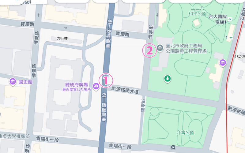 道路規制全面通行止め(車両通行禁止)①凱達格蘭大道(重慶南路~懷寧街)