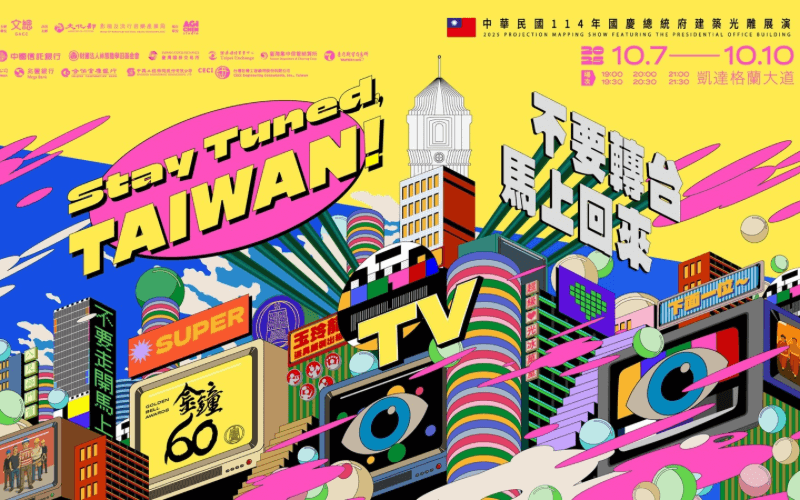 総統府では10/7(火)~10/10(金)の4日間に渡って「2025國慶總統府建築光雕展演」というイベントが開催されます。このイベントでは総統府が巨大なテレビに変身!?台湾テレビの60年間の名場面をプロジェクションマッピングによる演出で振り返ります。