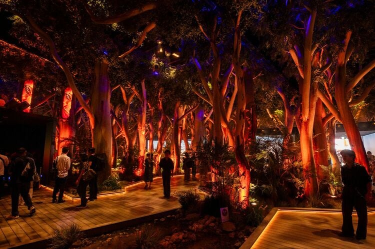 パビリオンに入ってすぐに体験できるのは、このユーカリの木々の間を歩くブッシュウォークの疑似体験。温度や湿度、香りまで再現されたこの人工のユーカリ林は、当然、作り物なのだけれど、一気にどこか遠い場所に来たような気分にさせてくれる。