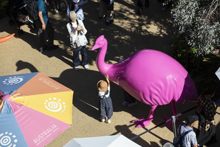 オーストラリアパビリオンの入口には有袋類のセレブ・カンガルーの像がある