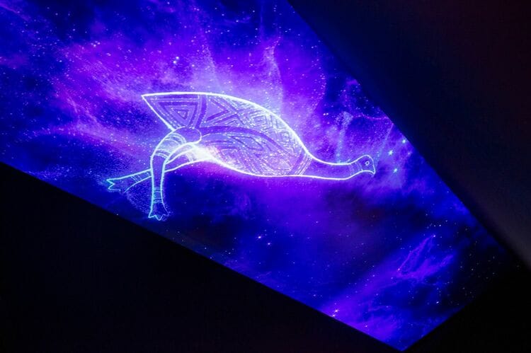 そこから続くのが、星空。南半球の星空とオーストラリア大陸の先住の人々がその星々の輝きに何を見ていたのかが映像とともに説明される。個人的には、この通路のようなちょっとした展示が一番、印象的だった。
